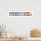 Decorate a corner with a bright colorful banner of 10 cartoon rabbits against a rainbow of watercolor background. A whimsical piece of fun art you can customize for someone as a gift by choosing specific text in the sign of the last bunny. Currently reads "Sam's Room"