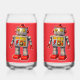 Add a touch of nostalgia to your drinkware with this charming retro robot glass concept featuring a classic 1950s style tin toy robot design against a bold red background. These glasses are perfect for science-fiction fans and vintage toy collectors alike