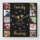 10 Square Photo Collage Family Quote Black Gold Wall Clock