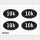 10k Race Run Walk Oval Sticker. Perfect for your favourite power walker or runner. Design features text in white with black background. Easily customize by choosing your own background colour! Priced by the sheet. Volume discounts available.