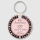 A 10th anniversary silver keychain monogram with two hearts in a circle shape surrounded by diamonds.