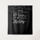 Welcome the party's honorees and guests and utilize as a fun photo backdrop for pictures with this 10th wedding anniversary banner sign designed in black and silver with a string lights border and featuring a retro typography title 10 YEARS IN THE MAKING which incorporates their wedding year as part of the design and personalized with their names. NOTE: You can change the black background colour to coordinate with your party theme colours by clicking on CUSTOMIZE FURTHER. Contact the designer via ZAZZLE CHAT or makeitaboutyoustore@gmail.com if you'd like this design modified, on another product or coordinating party supplies and gifts.