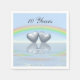 Napkins with my original design of two tin or aluminum hearts floating on the water under a rainbow. Customizable text says "10 Years".