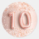 A blush, rose gold background decorated with faux glitter dust. Number 10 written with a balloon style font.