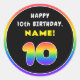 10th Birthday: Colourful Rainbow # 10, Custom Name Classic Round Sticker