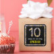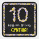 This fun, botany-inspired birthday square sticker design has the message “Happy 10th Birthday,” and an editable recipient name. The large number “10” plus the border consist of flower icons. Stickers like these might be used when celebrating somebody’s tenth birthday. [~Z0000652]