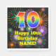 This exciting and joyful birthday paper napkin design features a large number “10” having a colourful rainbow spectrum gradient inspired pattern. It also features the message “Happy 10th Birthday,”, and a personalized name. The background features a vibrant and colourful pattern inspired by bursting celebratory fireworks. Paper napkins like this might be use at a party for somebody who is celebrating their 10th birthday. [~Z0000574]