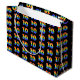 This vibrant and colourful gift-bag design features the number "10" having a rainbow spectrum gradient inspired pattern. The background is coloured black. A fun gift bag like this might be used when preparing presents being given to celebrate somebody’s tenth birthday, or perhaps a married couple’s 10th wedding anniversary, or some other tenth event. [~Z0000523]