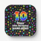 10th Birthday: Fun Stars Pattern and Rainbow “10” Paper Plate