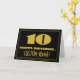 The front of this vintage appearance birthday themed greeting card design features a large art deco appearance inspired number "10", the message "HAPPY BIRTHDAY,", a customizable name, and a border pattern consisting of lines. The front also features a black-coloured background. The inside features a personalized birthday greeting message, or could perhaps be cleared and left blank if a message is to be written by hand instead. A custom birthday card like this might be a fun way to send birthday wishes to somebody who is celebrating their tenth birthday. [~Z0000506]