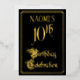 The front of this fancy, ornate, foil tenth birthday party/celebration invitation design features the message “10th Birthday Celebration” in opulent script-style text. It also has an editable name. The background of the front is coloured black by default (although it can be customized to a different colour). The back features personalized details about the event, such as the date, time, location, and any other information that may be relevant. Luxurious, opulent, editable invitations like these might be used to invite guests to a birthday party being held to honour somebody’s 10th birthday. [~Z0000589]
