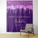 A tapestry for a girly and glamourous 10th (or any age) birthday party. A deep purple background with purple and pink faux glitter drips. Personalize and add a name, age 10 and a date The text: The name is written in pink with a modern hand lettered style script. Can be used as a welcom banner, wall decor for the party or as a photo booth backdrop.