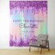 A tapestry for a girly and glamourous 10th (or any age) birthday party. A rainbow, unicorn coloured holographic background with purple and pink faux drips. Personalize and add a name, age 10 and a date The text: The name is written in purple with a modern hand lettered style script. Can be used as a welcom banner, wall decor for the party or as a photo booth backdrop.