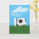 A black and white soccer ball in green grass, blue sky, and clouds for a 10th birthday.