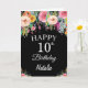 10th Birthday Watercolor Floral Flowers Black Card with personalized name and age. For further customization, please click the "Customize it" button and use our design tool to modify this template.