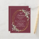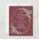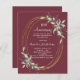 A merlot, burgundy background. Decorated with greenery and a golden oval frame. Personalize and add a name and details.