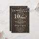 Rustic design with dark brown wood pattern and fairy string lights. Features script elegant font. Cheers to 10 years! Can be personalized into any year of marriage! Message me if you need further customization.