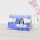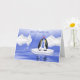 Fun anniversary greeting with two Penquins floating of Ice surrounded by icebergs in the artic. Graphic. Available in