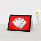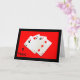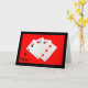 Une photographie d'un 2 de pique, 3 de cœur, 3 de trèfle et un 3 de carreau, cartes totalisant 11 points, est le sujet de ma carte d'anniversaire "11 Ans C'est Important !".
