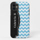 Coque iPhone 5 élégant conçu avec un motif zigzag bleu & blanc chevron, un cadre noir sur le côté gauche, et personnalisé avec votre nom ou texte personnalisé en blanc sur le cadre noir. Cette conception est parfaite pour l'utilisation verticale et horizontale de l'iPhone 5.