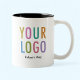 Easily personalize our ceramic two tone mug with your business logo, recipient name, or other custom text. You can reduce the cost of disposable cups and be green by giving employees their own reusable mug. Available in 11 ounce and 15 ounce with a black inside colour. Also sold in other colours. No minimum order quantity and no setup fee.