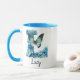 Un mug à café personnalisé dans des tons de bleu avec un papillon coordonné, présentant le monogramme de la lettre "L". Personnalisez-le facilement avec votre nom ou créez un cadeau unique pour vos proches. Suffisamment d'espace pour ajouter une citation ou un message supplémentaire ou même un arrière-plan. Ce mug est également disponible dans différents styles et combinaisons de couleurs. Parcourez la collection pour voir des exemples de ce type de police sur les différents styles et tailles de tasses.