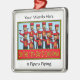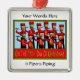 I was impressed by the quality and size of the ornament. Metal framing and design were perfect. Definitely recommend any of the metal framed ornaments. I ordered different ones all of the same quality and personalized professionally. Perfect No pictures as they were all gifts