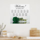This elegant wedding seating chart has 11 tables, each with 10 seats, accommodating a total of 110 guests. The design exudes romance, sophistication, and beauty, showcasing a single deep emerald green coloured rose lying on its side, reflecting in a water pool. The title of the chart, "Welcome! Please Find Your Table," is written in fancy script calligraphy, leaving ample space for the couple's names and wedding date at the bottom. This seating chart serves as a perfect welcoming gesture for your wedding reception and assists guests in locating their designated seats with ease.