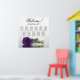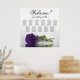 This elegant wedding seating chart has 11 tables, each with 10 seats, accommodating a total of 110 guests. The design exudes romance, sophistication, and beauty, showcasing a single deep royal purple coloured rose lying on its side, reflecting in a water pool. The title of the chart, "Welcome! Please Find Your Table," is written in fancy script calligraphy, leaving ample space for the couple's names and wedding date at the bottom. This seating chart serves as a perfect welcoming gesture for your wedding reception and assists guests in locating their designated seats with ease.