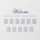 All text is navy blue. The word Welcome is written in an elegant calligraphic script, the rest in caps. The tables are on 2 rows. Above them and under the word Welcome, there is the message "Please find your seat!".