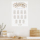 Help your guests find their table with this white floral wedding seating chart. It is suitable for a wedding with 11 tables and 110 guests.