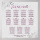 Ce tableau de 11 places est à la fois simple et élégant avec du texte couleur violet ou magenta sur un arrière - plan gris clair. Le design comporte un titre de calligraphie en dentelle avec un faux film en argent frileux décoratif dans les coins. Une façon élégante, chic et sophistiquée d'aider vos invités à trouver leur siège à votre réception de mariage. Il comprend l'assignation de table pour 110 personnes avec 10 places par table.