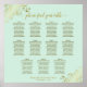 Ce tableau de 11 places est à la fois simple et élégant avec du texte doré sur un arrière - plan vert clair ou néo-menthe. Le design comporte un titre de calligraphie en dentelle avec un faux film décoratif dans les coins. Une façon élégante, chic et sophistiquée d'aider vos invités à trouver leur siège à votre réception de mariage. Il comprend l'assignation de table pour 110 personnes avec 10 places par table.