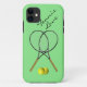 Deux raquettes de tennis et des balles de tennis avec les mots Tennis Love font un look fantastique pour votre iPone