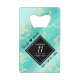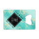 Commémorez le 11ème anniversaire du mariage turquoise avec cet ouvre-bouteille élégant ! Un élégant lettrage noir et blanc sur marbre jaune et bleu verdâtre arrière - plan ajoute une touche mémorable pour cette occasion spéciale et jalon. Personnalisez avec les noms du couple et les années de mariage. Design © W.H. Sim, Tous droits réservés. Voir plus sur zazzle.com/expressionsoccasions