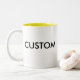 La tasse 11oz en céramique à deux tons faite sur commande - JAUNISSEZ à l'intérieur, 4,8" haut x 3,2" diamètre. options de 11 onces ou de 15 onces. Micro-onde et coffre-fort de lave-vaisselle. Sécurité de nourriture et de boisson de FDA approuvée. Noir, chaux, rouge foncé, bleu marine, orange, rose, rouge, jaune, vert forêt, et options bleu-clair de couleur.