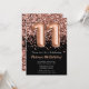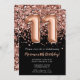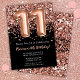 11th Birthday Invitation Black Rose Gold Glitter Elegant black and rose gold 11th birthday party invitation for a 11 year old girl with modern script writing and fun foil balloons.