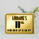 The front of this elegant and Roaring Twenties era inspired eleventh birthday party/celebration foil invitation card design features a personalized name, an art deco look inspired number “11th”, the message “BIRTHDAY PARTY”, and a border pattern consisting of lines. The back features personalized details about the event, such as the venue/place, date, time, and any other information that may be useful. Luxurious, stylish, personalized invitations like these might be used to invite guests to a birthday gathering being held to celebrate somebody’s 11th birthday. [~Z0000606]