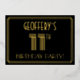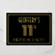 The front of this 1920s-1930s style inspired eleventh birthday party/celebration foil invitation features a custom name, a large art deco style inspired number “11TH”, the message “BIRTHDAY PARTY!”, and a border pattern consisting of lines. The front also features a black-coloured background by default, but it can be customized to a different colour if desired. The back features personalized details about the event, such as the date, time, location, and any other relevant information. Elegant, luxurious, customizable invitations like these might be used to invite guests to a birthday celebration being held in celebration of somebody’s 11th birthday. [~Z0000590]