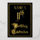 The front of this opulent, ornate, foil eleventh birthday celebration invitation design features the message “11th Birthday Celebration” in fancy script-style text. It also features an editable name. The background of the front is coloured black by default (although it can be customized to a different colour). The back features personalized details about the event, such as the date, time, location, and any other information that may be relevant. Fancy, elegant, personalized invitations like these might be used to invite guests to a birthday party being held to celebrate somebody’s eleventh birthday. [~Z0000589]