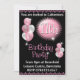 11th Birthday Party Invitation with balloons. Pink & black colour scheme.