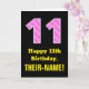 11th Birthday: Pink Stripes and Hearts "11" + Name Card