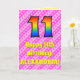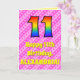11th Birthday: Pink Stripes & Hearts, Rainbow # 11 Card