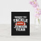 This fun junior year design is perfect for a high school junior football player or 11th grade teacher that loves to support their high school football team! Perfect for back to school, 10th grade graduation or all school year long! Features 'Ready To Tackle Junior Year' high school junior quote w/ football graphic. Great for an 11th grader or 11th grade teacher that loves to watch or play football!