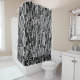 A shower curtain with a quirky original digitally hand drawn abstract pen and ink style seamless pattern. This large scale bold pattern design uses a vector graphic image tile allowing the pattern to be made even larger, or smaller, can be rotated and the background colour can also be customized.