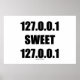 Showcase your wry information technology side with this poster that all software testers can relate to: "127.0.0.1 Sweet 127.0.0.1" -- which means "Home Sweet Home" in geek speak.