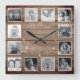 12 Black And White Photo Collage Farmhouse Wood Square Wall Clock