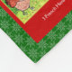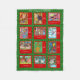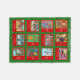 Based on the well-known Christmas carol, "The 12 Days of Christmas," this cute, whimsical design features a veritable menagerie of different animals. Each of the images for the 12 days is framed in a red square with white text, all set against a festive green background with white snowflakes.