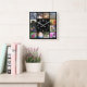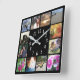 12 Family Multi Photo Collage Square Black Modern Wall Clock