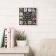 12 Family Photo Collage Pallet Wood Black Gold Square Wall Clock